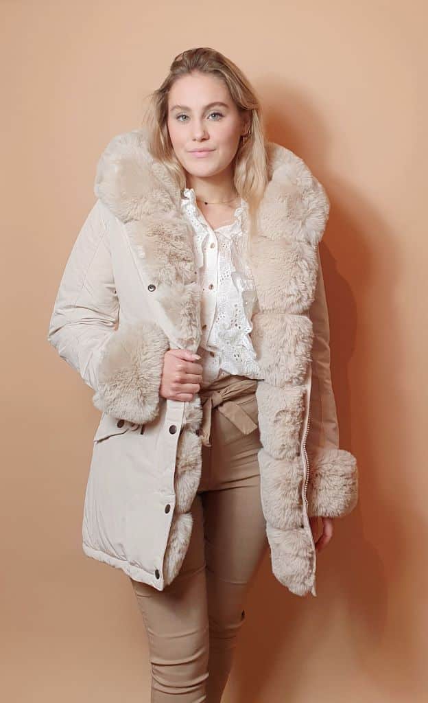 Onmisbaar is deze mooie dames winterjas Suzanne met capuchon. De heerlijk warme en zachte jas heeft een mooie licht beige kleur en zorgt ervoor dat jij het zeker weten niet koud gaat krijgen!